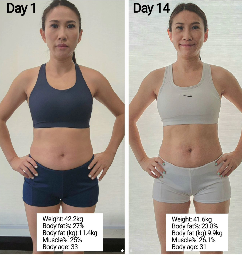 ¡Estos son mis resultados del día 14 de TRME! Tengo 41 años y comencé TRME con el objetivo de mejorar mi bienestar corporal en términos de masa muscular, estado físico y también de recuperar mi juventud por dentro y por fuera😍.